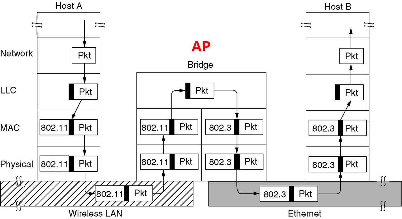 移动管理: 在无线局域网中, MAC 实现移动管理 (切换)