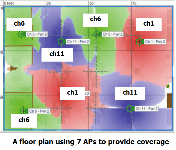 为了避免信道间干扰, 同一区域内的 Ad Hoc 网络或 AP 的工作信道不能重叠, 中心频率间隔最少为 25MHz, 因此同一区域最多只能有 3 个工作在不同信道的 Ad Hoc 网络或 AP.