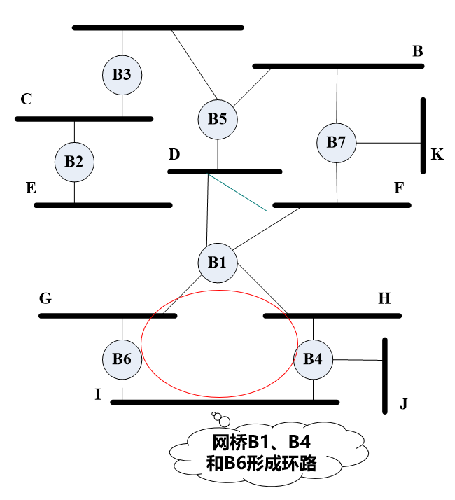 问题: 扩展局域网中可能存在环路, 造成帧永远在扩展局域中循环转发下去 .