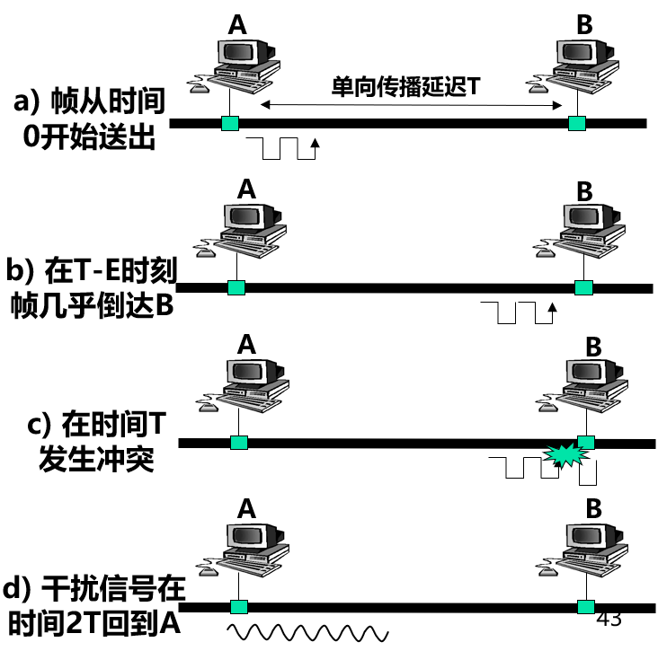 • 冲突 (碰撞) 降低了链路的传输效率