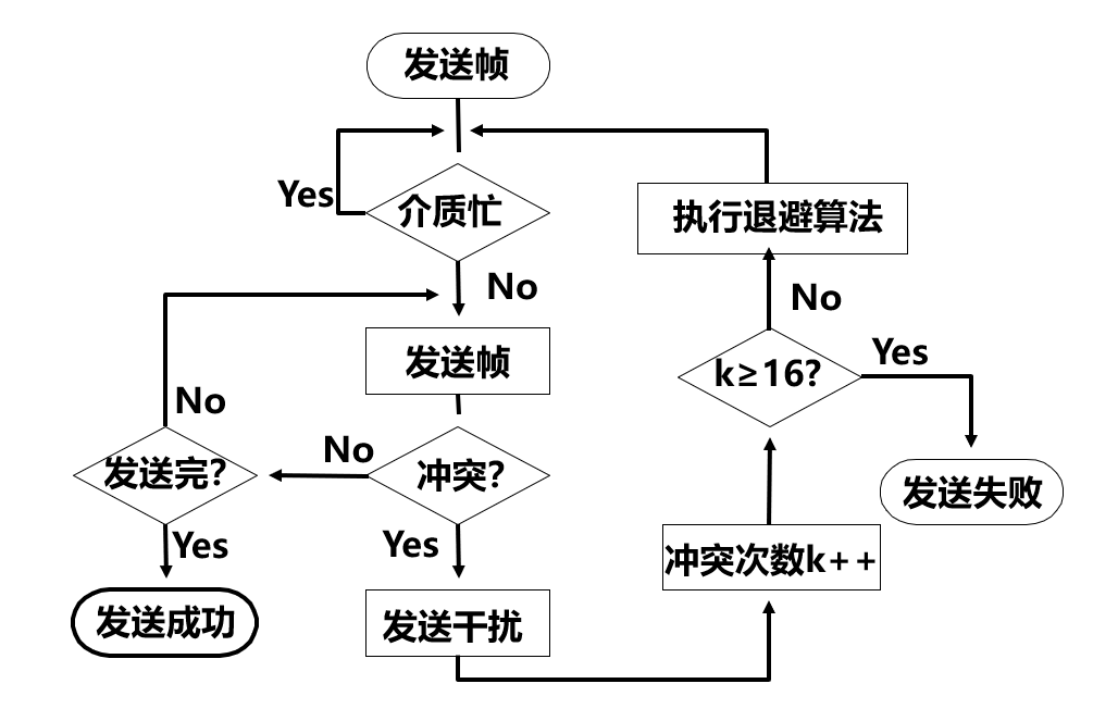 • 重传计数器到达一个设定的门限值时, 发送方将放弃发送数据帧, 并且返回一个错误.