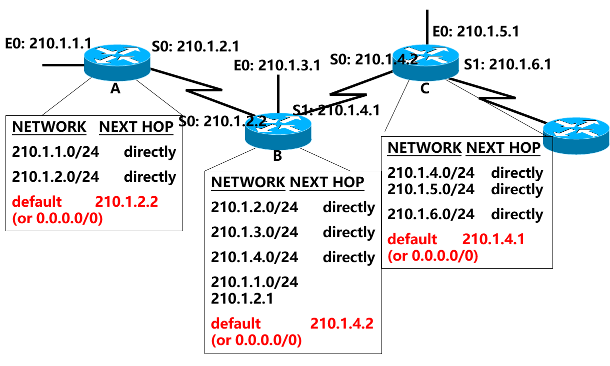 每个路由器上都有一个路由表, 手动配置或者根据路由协议自动生成, 对于 Internet, 每增加一个网络, 必须在路由表中建立该网络网络号所对应路由表表项.
