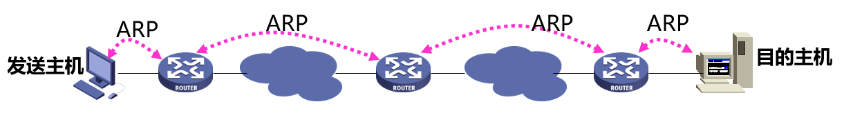 如此重复, 直到目的网络的路由器查找转发表知道目的节点和自己在同一个网络中, 对目的 IP 地址执行 ARP 过程, 然后将数据发送到目的节点.