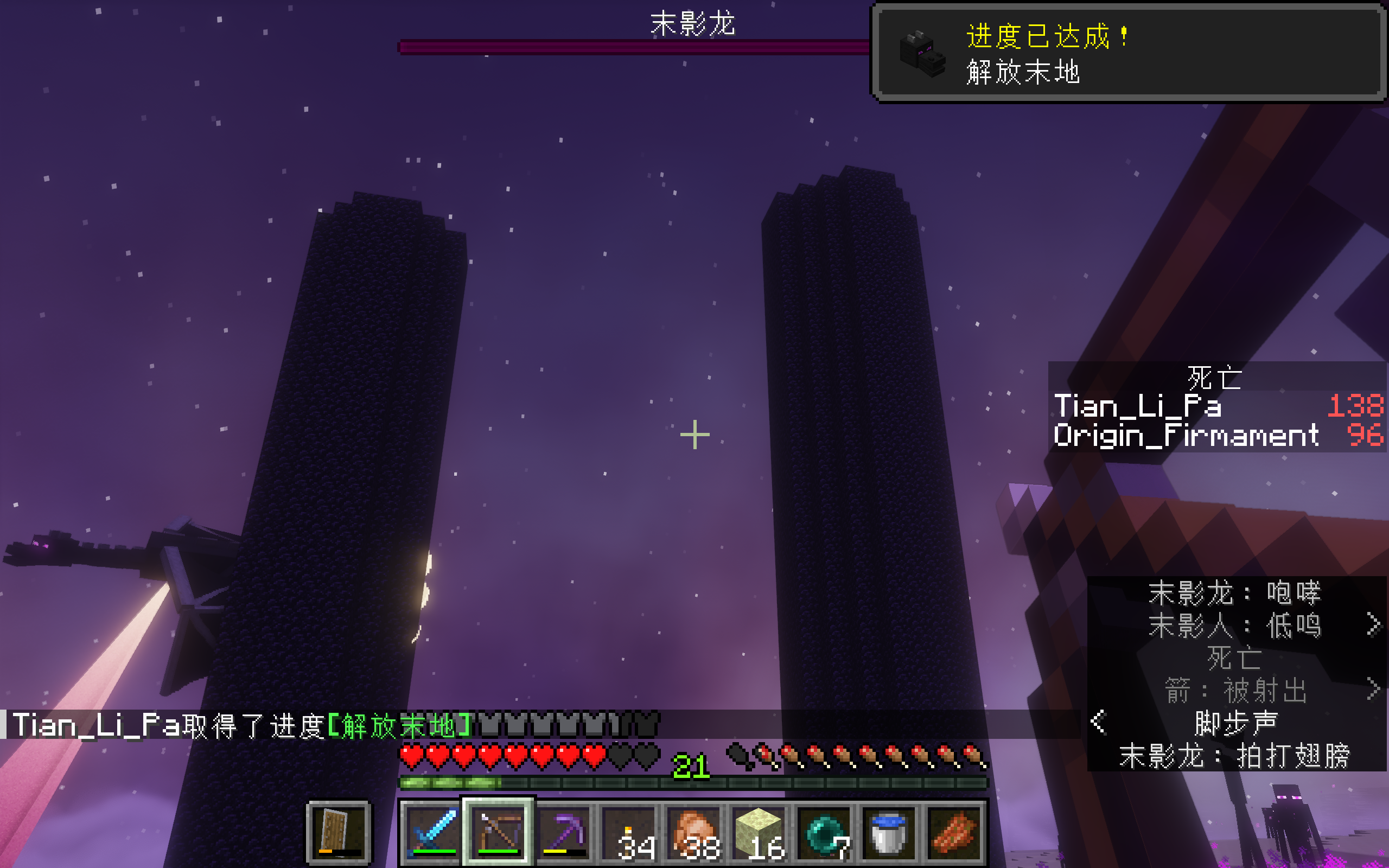 Minecraft 通关记录 发表于 2026-02-06 更新于 2026-02-07 熬过期末之后猛猛玩了几天游戏, 终于通关了一次从小到大一直在沉迷但是从未通关的 MC, 还把暮色森林也刷了一遍. MC 大概是我唯一一个真正的白月光了吧. 不过现在认真玩了一遍, 还是非常好玩.