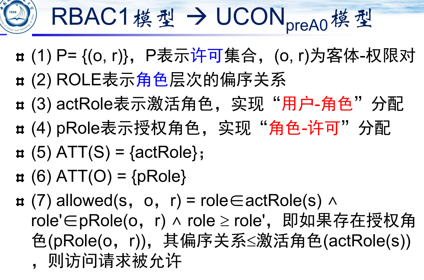 本质是对访问矩阵模型的扩充, 能够很好的解决系统中主体对客体的访问控制, 访问权力的分配与控制问题, 但模型没有提供信息流控制机制, 不能完全满足信息系统的全部安全需求.